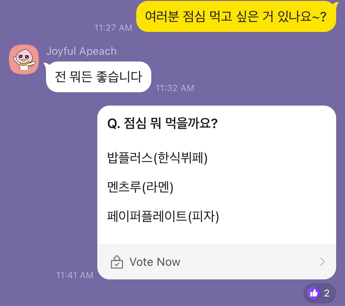 단톡방에서 메뉴 선정이 시작돼요.