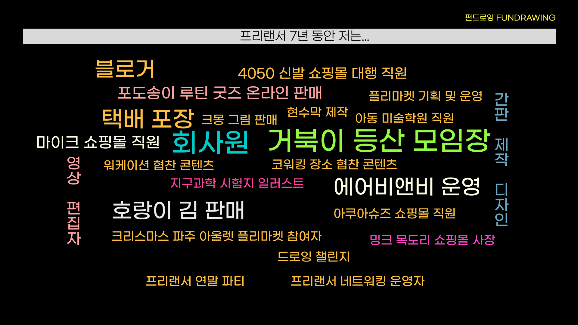 제가 만든 브랜드는 ‘펀드로잉’으로 '언제나 나답게!'를 모토로 삶을 즐겁게 그리는 브랜드입니다. 우리는 지속 가능한 삶을 위한 자신의 이야기를 그림으로 손쉽게 표현하는 방법을 제공하고, 디지털의 편리함과 연결하여 각자의 이야기를 기록하고 나 다운 콘텐츠를 만들 수 있도록 이야기를 시각화하는 데 도움을 줍니다.